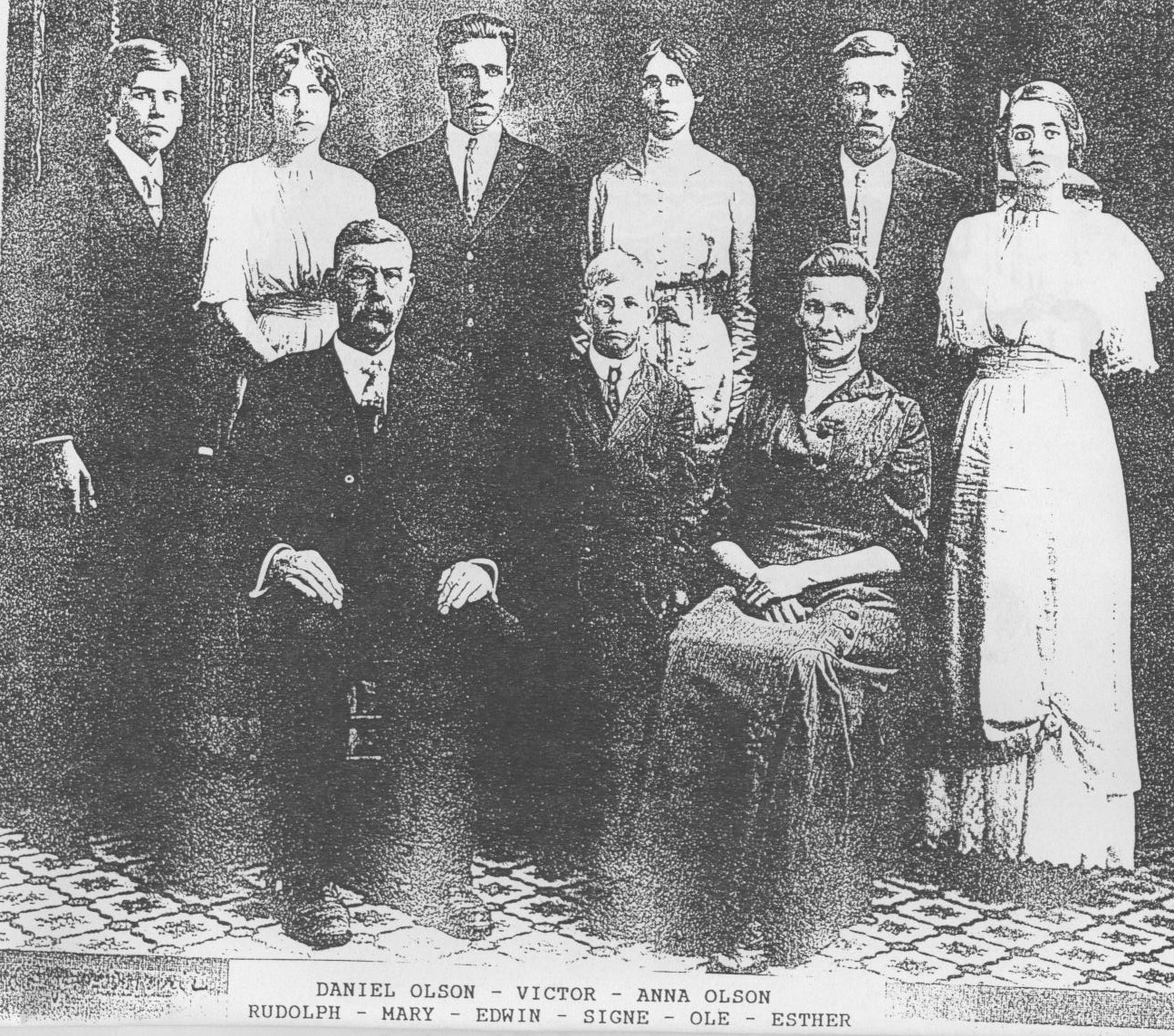 Her name is : May Sissel Frøynes email address: om.ms@c2i.net. She says that she can confirm that the family on the right hand side is Daniel Berteus Olsen Dragland and his family. She sent me another picture of the core family as well. (See below...) She also says that the age of the children also tells her that it must be him. Daniel died in Sharon, North Dakota, USA. His wife, Anna Louise Eriksen was the sister of her great grandmother. She came from Sørvikmark near Harstad, Norway.