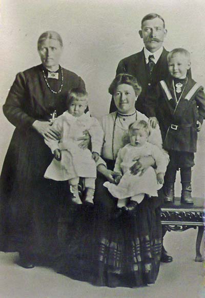 Richard Bernhard Olsen taken in 1914 with the 3 oldest children, his wife, and her mother |